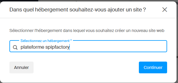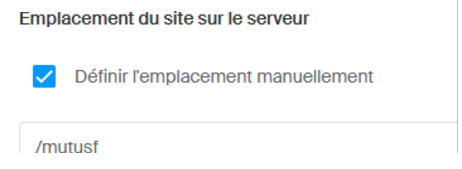 - Choisir l’emplacement du site dans /mutusf (c’est le répertoire de la mutualisation)