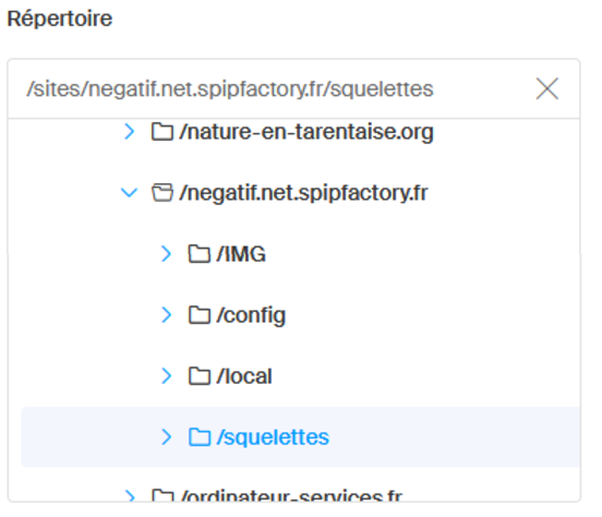 En reprenant les informations de la fiche membre - Choisir le répertoire /squelettes du site créé
