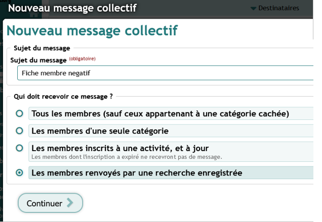 - clic sur « Messages collectifs » « Nouveau message collectif »