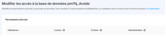 - Adresse de la base de données : pm7hj.myd.infomaniak.com