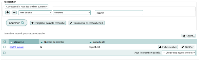 - choisir la recherche enregistrer du nom du site ici « negatif »