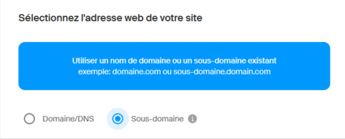- Sélectionnez l’adresse web de votre site en sous-domaine