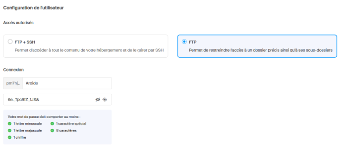 - le nom de l’utilisateur issu du formulaire sera « Nom de votre futur site (domaine) »