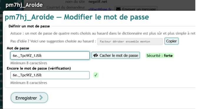 Nom du demandeur &Prénom du demandeur AROIDE Paul Courriel du demandeur : cliclac@free.fr utilisateur pm7hj_Aroide pass principal 6e._Tpc9fZ_1JS& |