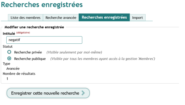 - cocher « les membres renvoyés par une recherche enregistrée »