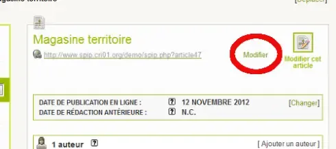 Sous le titre des articles et rubriques, apparaît l’URL de la page, vous pouvez la personnaliser en cliquant sur "modifier"