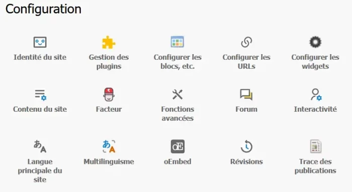 - dans « Configuration »->« Configurer les URLs », cochez la case « Activer la gestion avancée des URLs ».