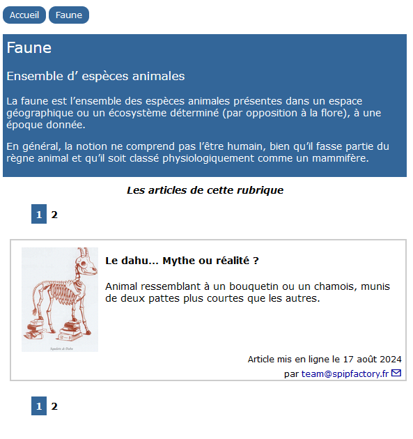 - Une sous/rubriques a un article publié dans la sous rubrique, elle s’affiche sous forme de liste déroulante