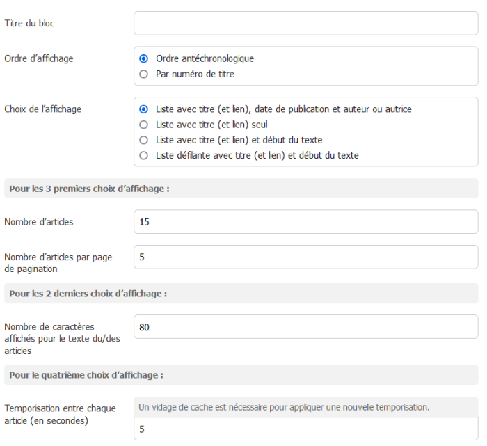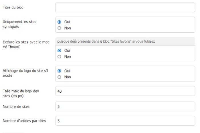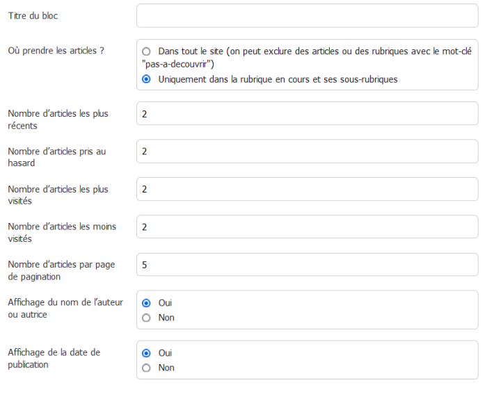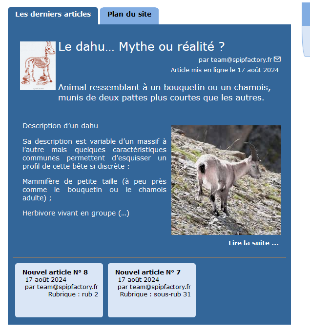 Avec un seul bloc et des onglets pour les derniers articles du site, le plan du site, un article, les articles d’une rubrique...