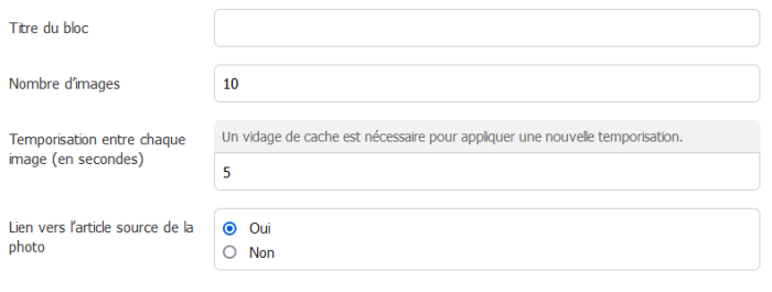 Si vous avez activé le plugin "Galleria", vous pouvez le paramétrer : Couleur de fond de la galerie, Couleur de fond de l’encart d’information, Couleur du texte de l’encart d’information, Taille des caractères du titre de l’image