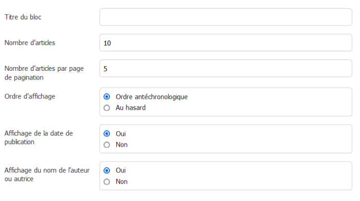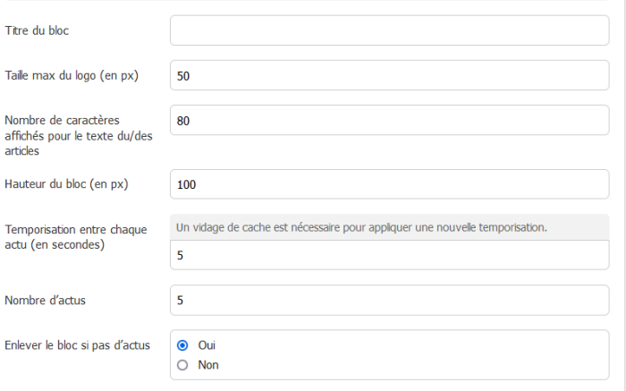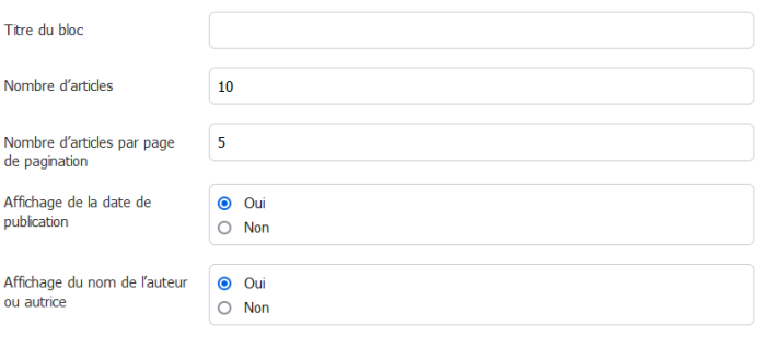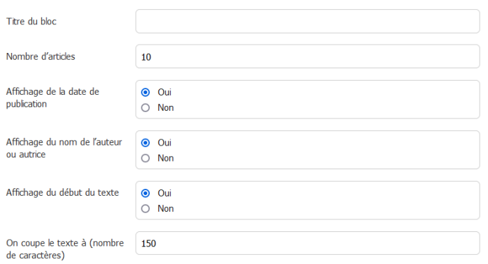 - Liste des derniers articles en une : Couleur du fond (#DAE6F6), Couleur du texte (#000000)