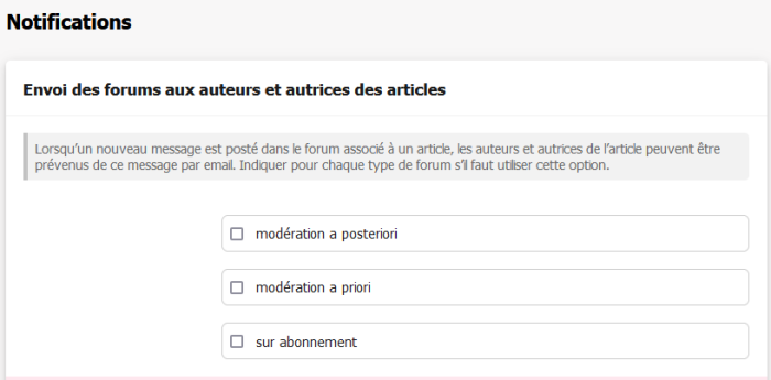Publication immédiate des messages (les contributions s’affichent dès leur envoi, les admins peuvent les supprimer ensuite).