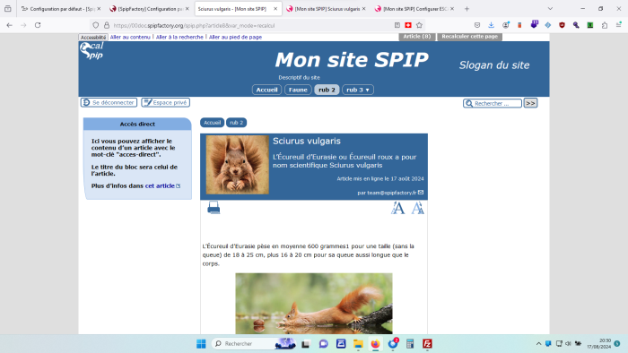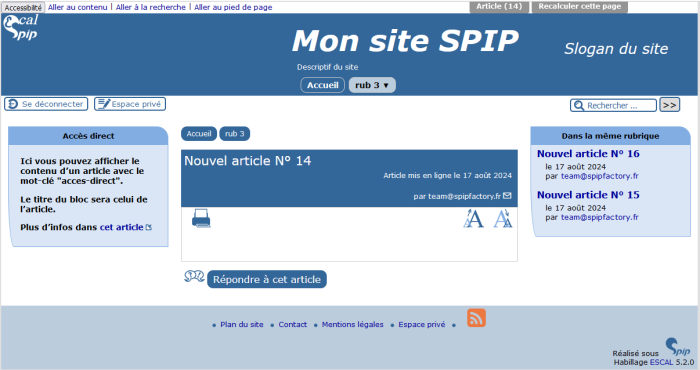 Cette noisette [3] très simple permet d’afficher le contenu de l’article à qui on attribue le mot-clé acces-direct. - Edito