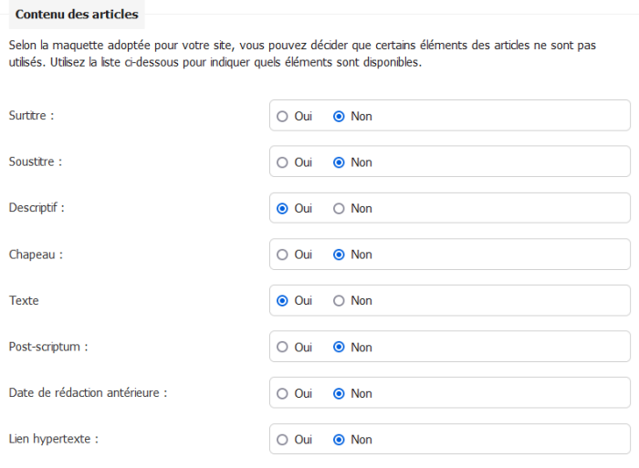 - Affiche aussi le texte explicatif de la rubrique, si celui-ci a été renseigné