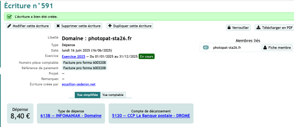 Et le membre ou l’admin peut à tout moment récupérer la facture en pdf