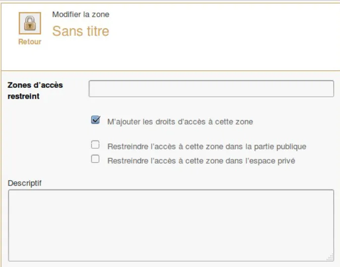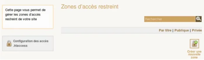 le plugin Accès restreint permet de définir et de gérer des zones de l’espace public et de l’espace privé en accès restreint.