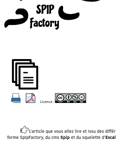 Si vous avez activé le plugin "Licence", l’icône correspondant à la licence que vous avez choisie pour un article s’affichera automatiquement en haut de l’article